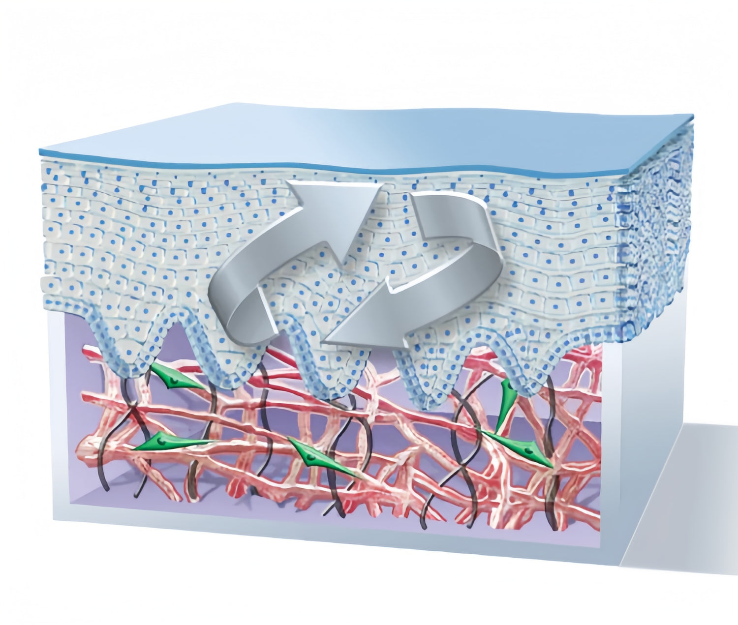 TriHex Technology helps the skin REBUlLD healthy collagen and elastinto support visible changes at the surface level. TriHex Technology helpsrestore the optimal skin environment and create room for new, healthycollagen and elastin by removing the damaged fragments.